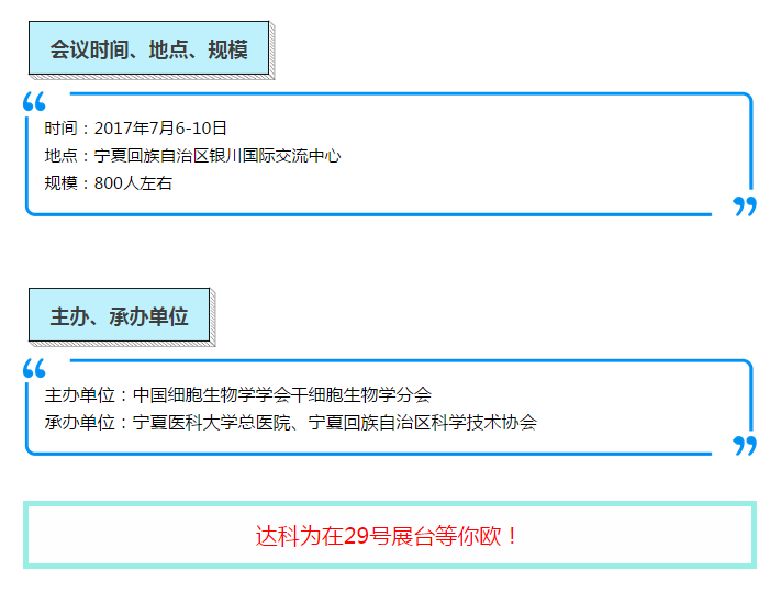 由中國細胞生物學(xué)學(xué)會干細胞生物學(xué)分會主辦,寧夏醫(yī)科大學(xué)總醫(yī)院和寧夏科學(xué)技術(shù)協(xié)會共同承辦的“中國干細胞第七屆年會”,將于2017年7月6日至10日在寧夏回族自治區(qū)銀川國際交流中心召開。本屆年會主題為:干細胞研究與轉(zhuǎn)化——破冰之旅。達科為也在本次會議中積極響應(yīng),達科為&PeproTech攜手合作,恭祝中國干細胞第七屆年會取得成功!