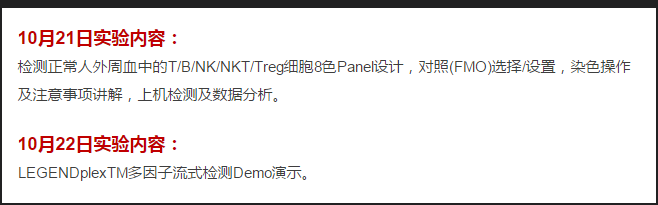黃金十月,達科為流式培訓(xùn)班要來沈陽啦,專業(yè)講解,理論與實驗雙管齊下,輕松完成流式八色檢測分析,更有LEGENDplexTM多因子Demo演示。流式上機名額有限,歡迎踴躍報名!