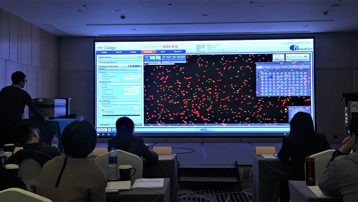 在Nexcelom中國區(qū)應(yīng)用科學(xué)家孫明偉博士操控下,Celigo應(yīng)用界面在超大的電子屏前一展風(fēng)采。其快速高效的掃描和分析能力躍然眼前!