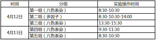*注:八色表染均為相同實(shí)驗(yàn)內(nèi)容,請根據(jù)自己的時(shí)間選擇不同時(shí)間段的實(shí)驗(yàn)。
