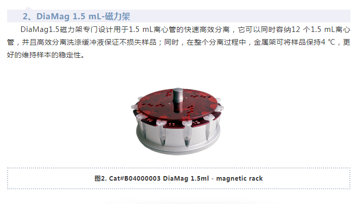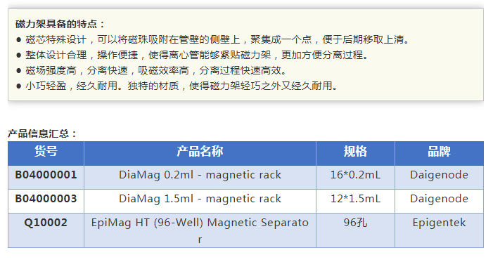 在分子實(shí)驗(yàn)過程中,磁珠法核酸純化、磁珠法免疫沉淀實(shí)驗(yàn)如:IP,Co-IP,ChIP等,都需要一個(gè)高效金屬磁力架,它不僅可以實(shí)現(xiàn)核酸和蛋白質(zhì)的高效磁珠分離,還可以簡化實(shí)驗(yàn)操作提高實(shí)驗(yàn)效率。隨著磁珠在核酸或蛋白分離方面的應(yīng)用普及,磁力架成為了實(shí)驗(yàn)室的必備小工具。