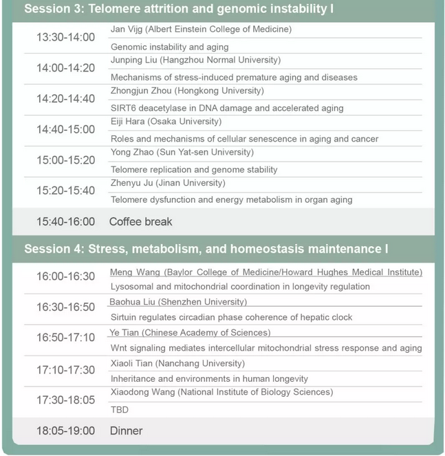 大會(huì)將邀請(qǐng)國(guó)際衰老研究相關(guān)領(lǐng)域的優(yōu)秀級(jí)科學(xué)家、專家學(xué)者及醫(yī)學(xué)工作者,圍繞“衰老的機(jī)制和干預(yù)”這一主題,針對(duì)“衰老機(jī)制”,“衰老與再生”,“代謝與衰老”,“衰老的遺傳和表觀遺傳機(jī)制”,“衰老的標(biāo)記物”,“衰老及衰老相關(guān)疾病的干預(yù)”等科學(xué)問(wèn)題進(jìn)行廣泛深入研討,旨在推動(dòng)科學(xué)應(yīng)對(duì)人口老齡化,合作研發(fā)防控過(guò)早老化及相關(guān)疾病的舉措。