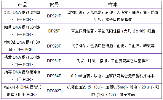 該類產(chǎn)品無需任何抽提,消化,沉淀以及離心柱純化,在離心管中就能純化DNA,可直接用于PCR檢測(cè)。