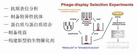 是一項(xiàng)篩選技術(shù),將外源多肽或蛋白與噬菌體的衣殼蛋白融合表達(dá),融合蛋白展示在病毒顆粒的表面,而編碼該融合子的DNA則位于病毒粒子內(nèi)。