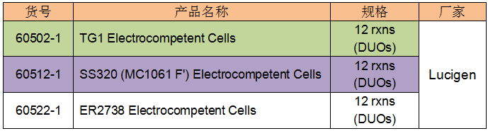 用于噬菌體展示文庫(kù)篩選,轉(zhuǎn)化效率是Stratagene的2-4倍