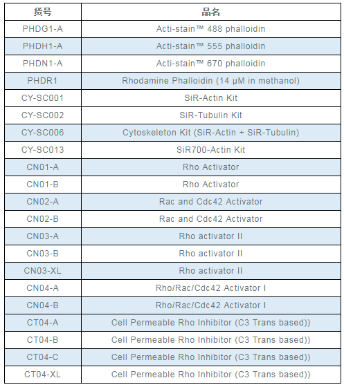 由于產品比較有特色,研究細胞骨架總是繞不開他們,包括F-actin、Tubulin的可視化以及信號通路中rac/cdc/rho的激活劑抑制劑等,同時促銷時間短暫,只到2月底(真希望這個2月有31天),