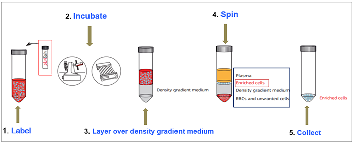 針對(duì)少量全血樣本通過(guò)淋分液分離PBMC時(shí)細(xì)胞損失太多或分離效果不好時(shí),這里給大家分享pluriSelect另一口碑不錯(cuò)用于全血樣本的富集和耗竭產(chǎn)品,只需要1ml全血樣本與對(duì)應(yīng)指標(biāo)的產(chǎn)品按照一定的體積比孵育,然后進(jìn)行break off離心方式就可以達(dá)到對(duì)應(yīng)初步的細(xì)胞富集和耗竭效果。能保證了后續(xù)要研究細(xì)胞的得率和純度,同時(shí)獲得的細(xì)胞純凈不帶磁珠。適合的樣本類(lèi)型包括:PBMC, Buffy Coat, Cord Blood, Bone Marrow, Primary Cell Solution。原理非常簡(jiǎn)單實(shí)用也讓小編腦洞大開(kāi)。
