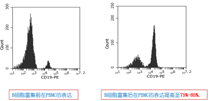 例1:pluriSpin? Human B Cell Enrichment(Cat#19-06001-31),B細(xì)胞富集后在PBMC的表達(dá)提高至75%-85%.: