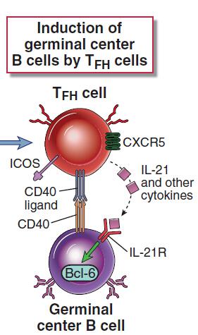 ICOS: Tfh 細胞上的 ICOS 與 B 細胞上的 ICOS-Ligand 作用,傳遞協(xié)同刺激信號,對 Tfh 細胞的產生及存活、 IL-21 的表達、發(fā)生中心的形成及特異性抗體的產生都至關重要。