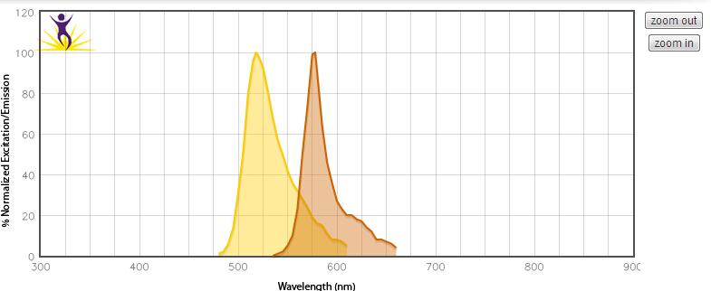 用激光束激發(fā)兩種或兩種以上熒光染料而發(fā)出不同波長的熒光,從理論上講,可以選擇光學(xué)組件將它們分開,僅使一種熒光被一種熒光探測器收集處理,而檢測不到另外一種熒光。但實(shí)際上由于熒光素的發(fā)射波長是正態(tài)或偏正態(tài)曲線,即有很寬的范圍,熒光素之間的波譜常有重疊現(xiàn)象,如下圖1-1所示。由此,我們需要進(jìn)行補(bǔ)償調(diào)節(jié),補(bǔ)償?shù)膹?qiáng)度將隨著各熒光探測器的放大倍數(shù)(電壓)的變化而變化,特定的電壓對應(yīng)特定的補(bǔ)償參數(shù)。