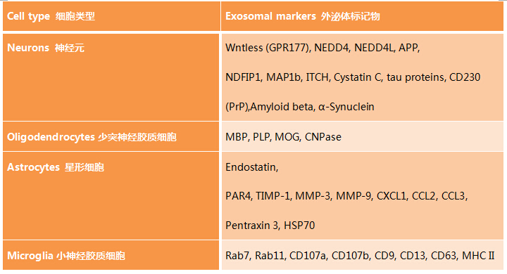 BioLegend公司可提供針對(duì)多種靶蛋白的抗體,可以鑒定來自中樞神經(jīng)系統(tǒng)中各種細(xì)胞類型的外泌體。
